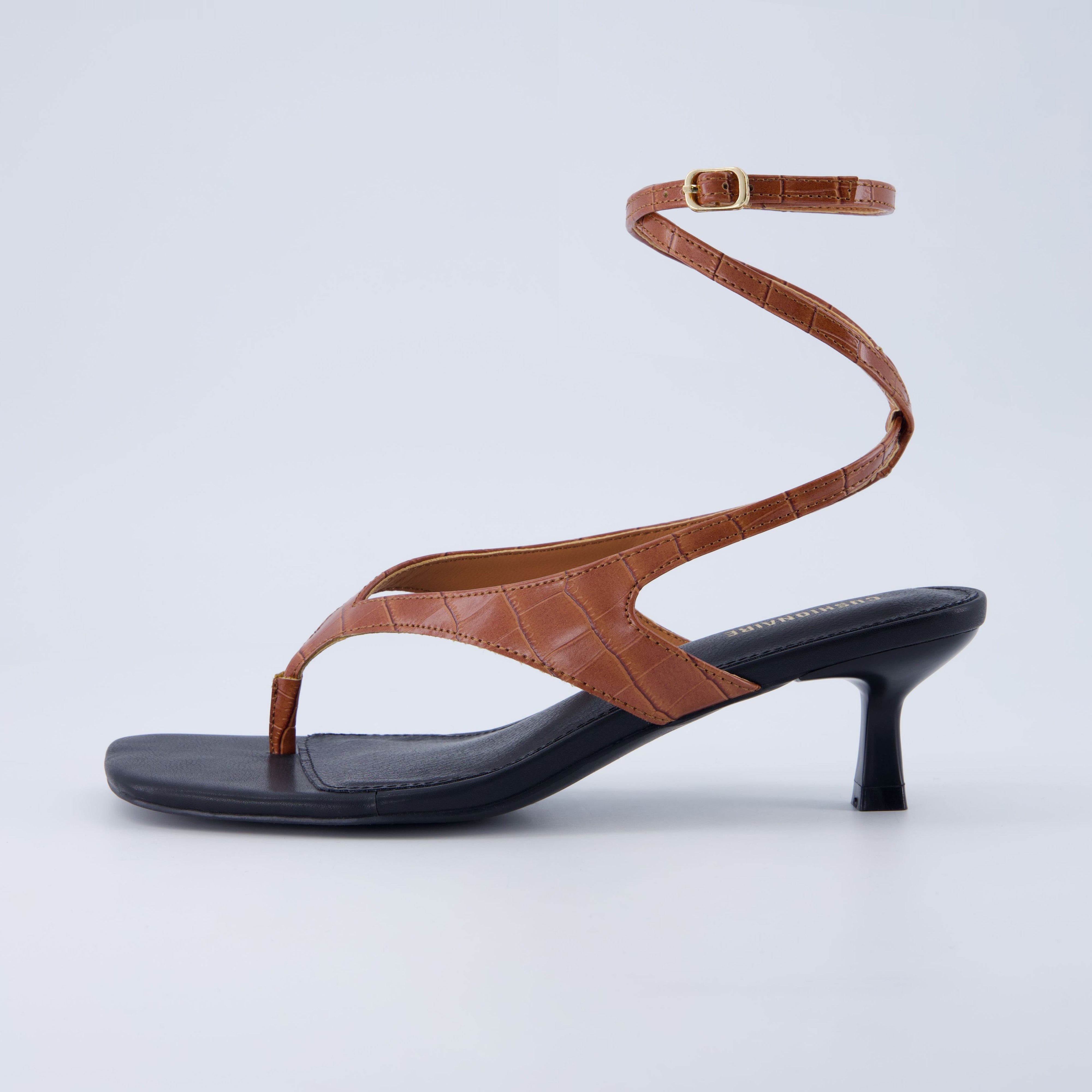 Meet Martini, an ankle wrap kitten heel thong sandal with a striking combination of elegance and edge that will step up your evening style. Featuring a textured faux leather upper and wraparound ankle strap, this thong-style sandal delivers a high-fashion look with custom comfort. The 1.5 inch kitten heel provides just the right lift, while the padded footbed ensures lasting wearability. From cocktail parties to rooftop dinners, the Martini sandal adds a bold finish to any outfit—wrapping your look in style and confidence.